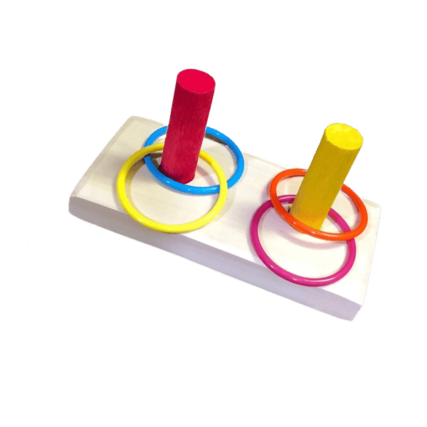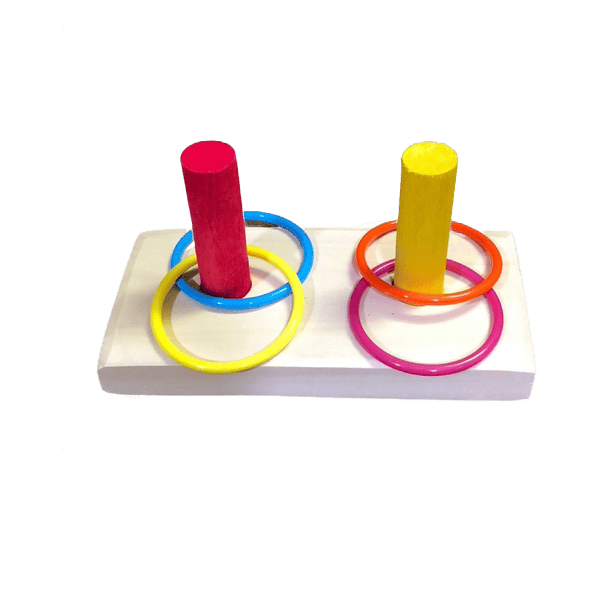 رنگهای جذاب: حلقهها معمولاً به رنگهای روشن و جذاب طراحی میشوند تا توجه پرندگان را جلب کرده و آنها را تحریک به بازی کنند.